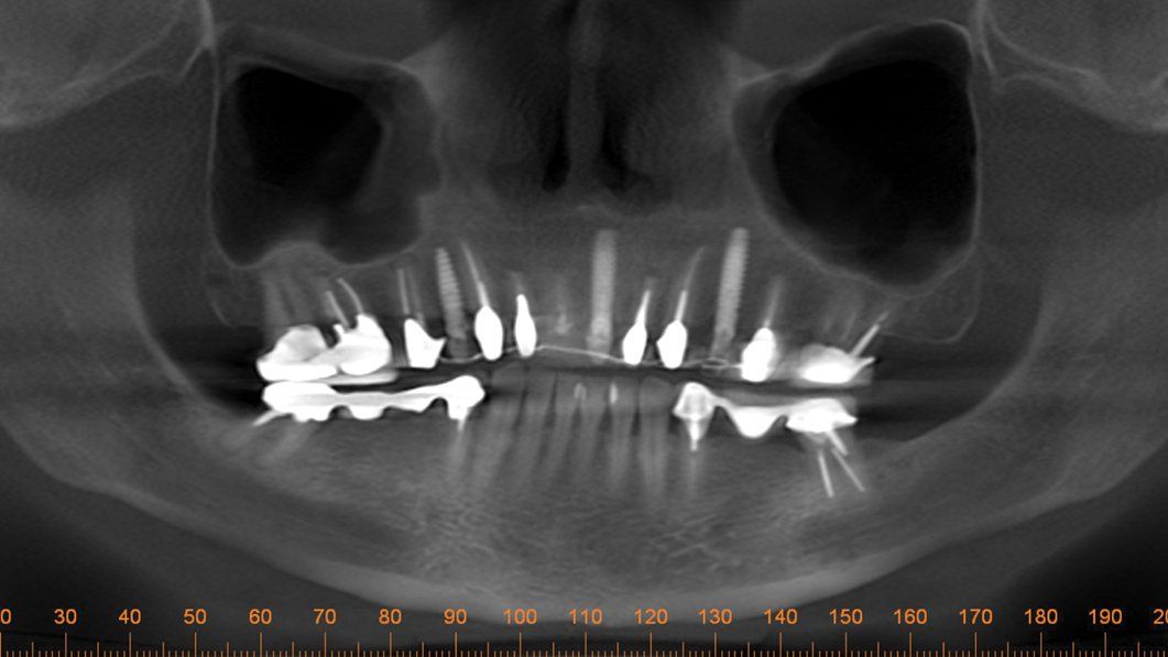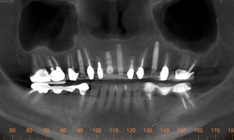 One day a 50 year-old patient and dentist friend of mine, (who already has multiple dental implants) came to my office and presented with a non-restorable fractured tooth number 8 (Figure 1). As you can see from the photograph, this looked to be a complicated extraction. As always, my treatment plan consists of proper imaging. With dental implant cases it usually involves the i-CAT. (Figure 2)
